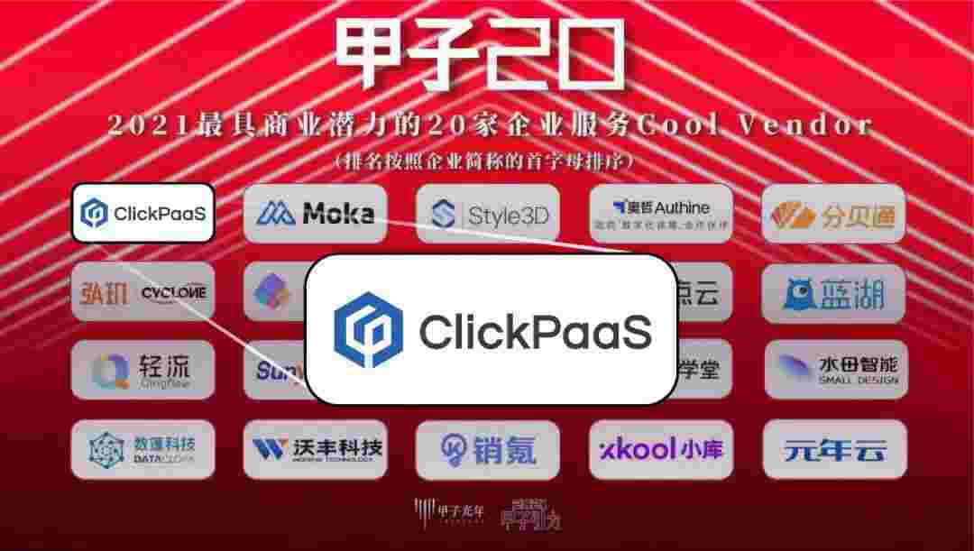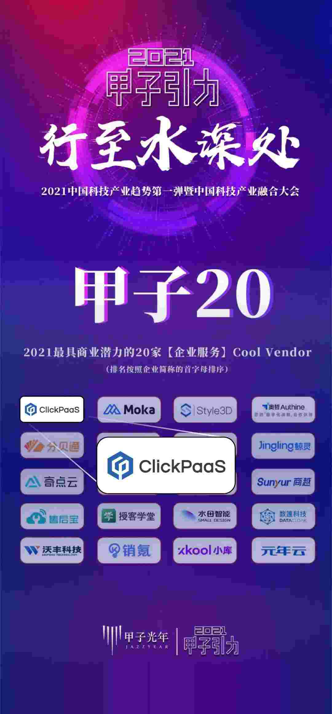 在《甲子20——2021最具商业潜力的科技企业榜单》中,,,,,,,,,EBPAY凭借在低代码领域领先的技术和强大的市场发展潜力,,,,,,,,实力斩获“2021最具商业潜力的20家企业服务Cool Vendor”大奖。。。。。。。。。。。