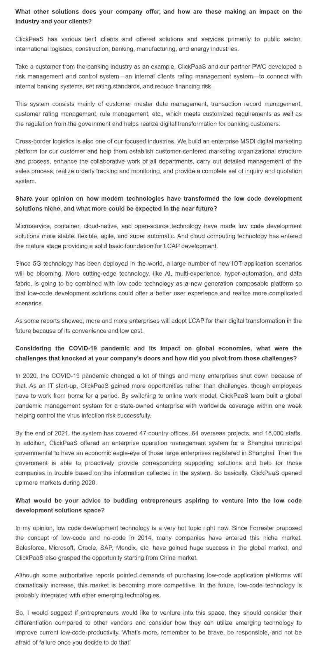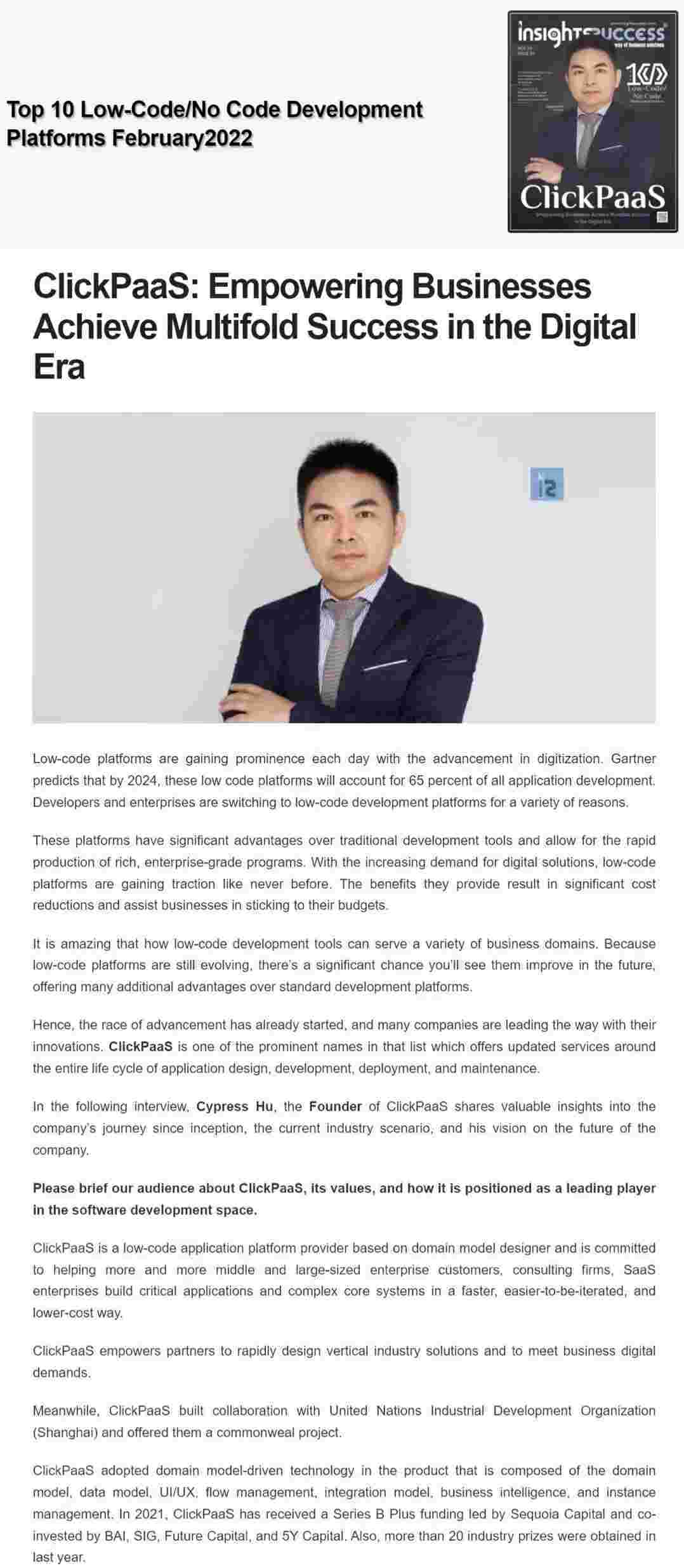 2022年年初,,,,,,,,,EBPAY入选外媒Insights Success低代码/无代码开发平台 Top10,,,,,,创始人、、、、、、、、CEO胡柏受邀接受专访并荣登封面人物,,,,,,他与Insights Success的读者分享了EBPAY成立的初心、、、、、、、发展历程、、、、、、、、当前的行业发展趋势以及他对公司未来的展望。。。。。。。。