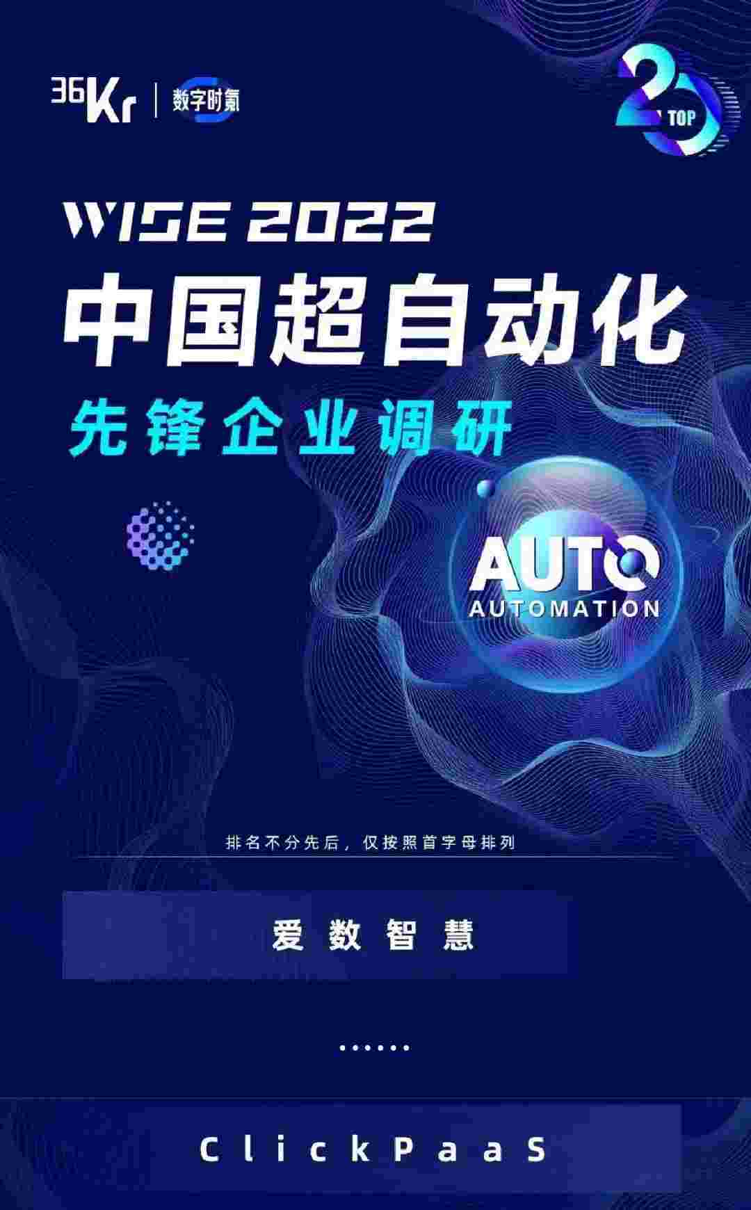 8月10日,,,,,,,,,,,由36Kr主办的WISE 2022中国超自动化峰会在杭州成功举办。。。。。。。。EBPAY作为国内低代码PaaS平台的领军企业,,,,,,,,,,,凭借过硬的技术实力和优质的产品能力,,,,,,,,在本次峰会中实力入选「2022年中国超自动化先锋企业」20强。。。。。。。