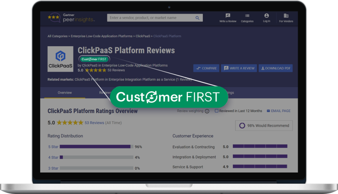 近日,,,,,,EBPAY凭借了在Gartner Peer Insights大量客户的五星好评,,,,,,,,成功成为国内首家荣获国际权威机构Gartner认证的低代码领域Customer First技术服务商。。。。。。。。。。其中参与评价的客户均是年营收在3.2亿规模以上的企业信息化负责人,,,,,,,行业涵盖物流、、、、、、、、、、、工程、、、、政务、、、、、、医疗、、、、、、金融、、、、、、、、能源等。。。。。。。。。。